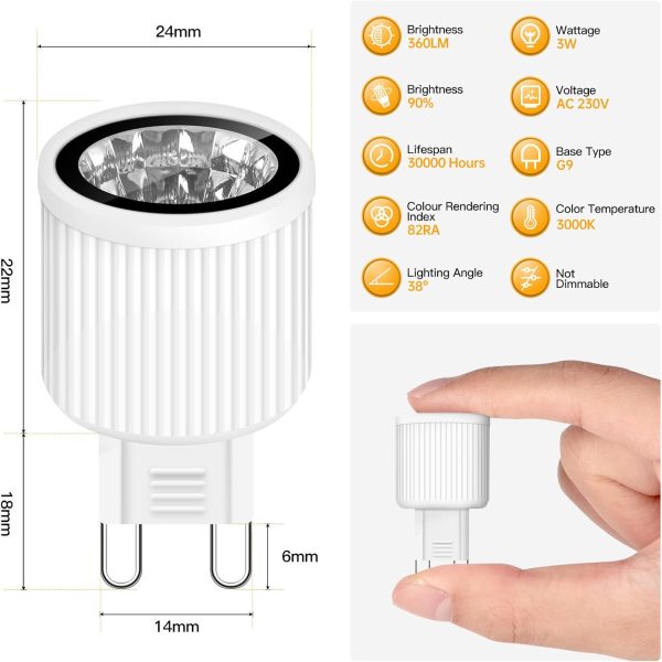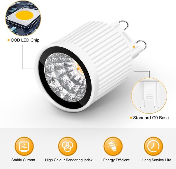 Eofiti G9 Led Bulbs Warm White 3000K G9 3W LED Light Bulbs Equivalent to 40W Halogen Black Energy Saving G9 Bulb 360LM 38° Beam Angle for Spotlight No Flicker Non-Dimmable AC 220V – 240V 82Ra 5-Pack