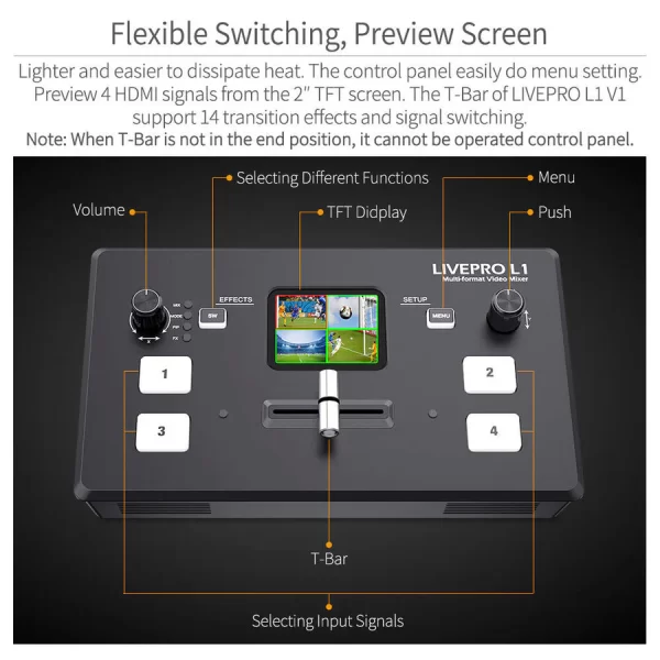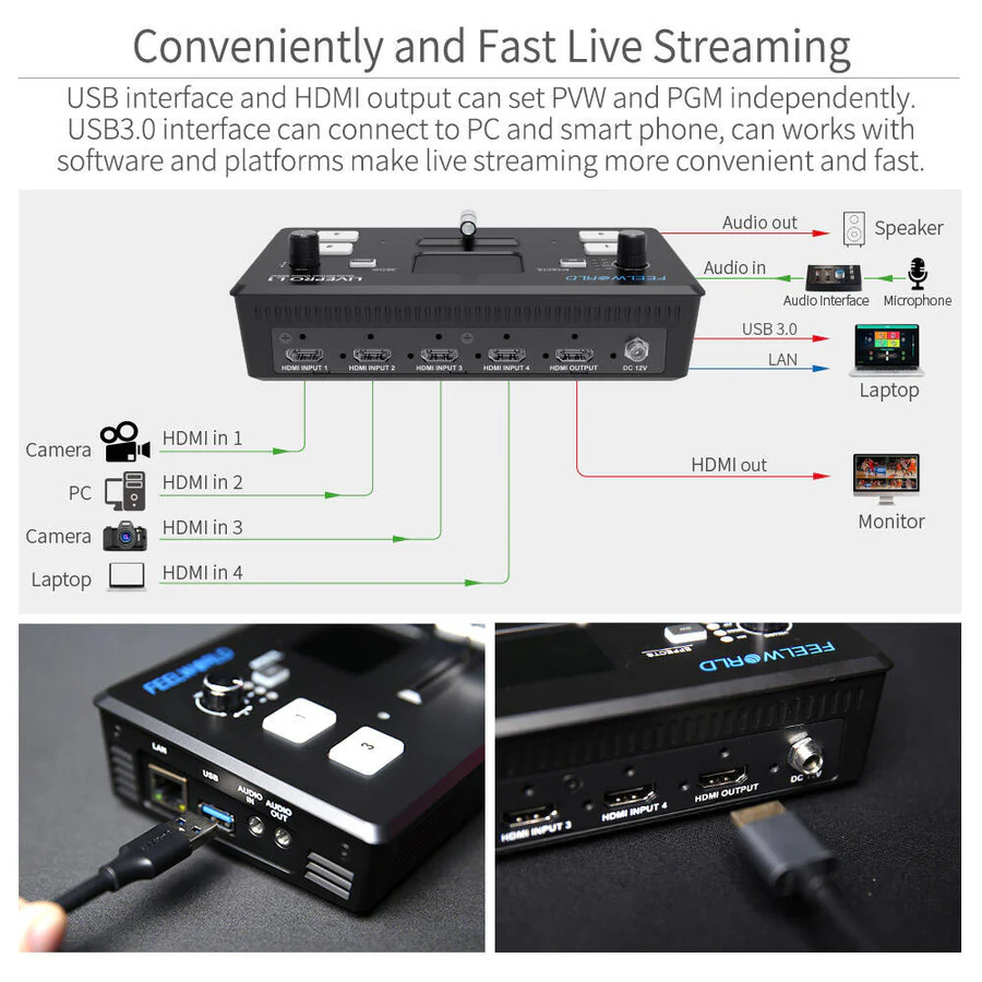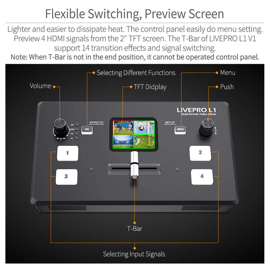 FEELWORLD LIVEPRO L1 V1 Multi Camera Video Mixer Switcher LCD Screen 4 HDMI Input USB3.0 Live Stream