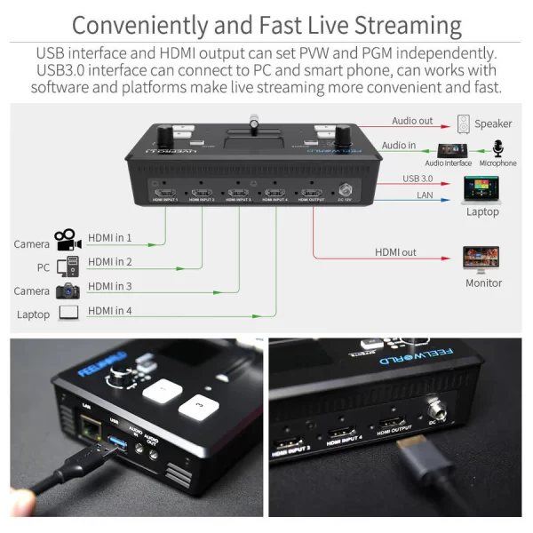 • FEELWORLD L4 5 Channel HD Video Switcher Multi Camera Video Mixer