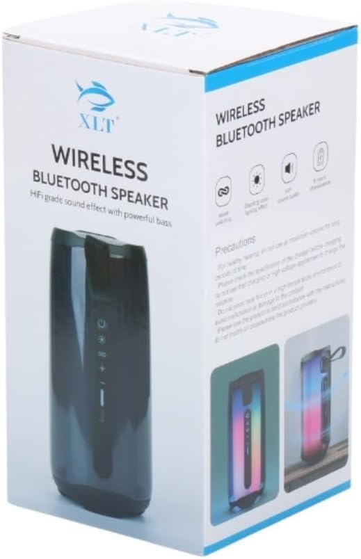XLT Portable Wireless Speaker, Wireless Speaker with 360 degrees Multicolor Lights, Surround Sound,Outdoor Speaker for Sports Beach Travel (Black)